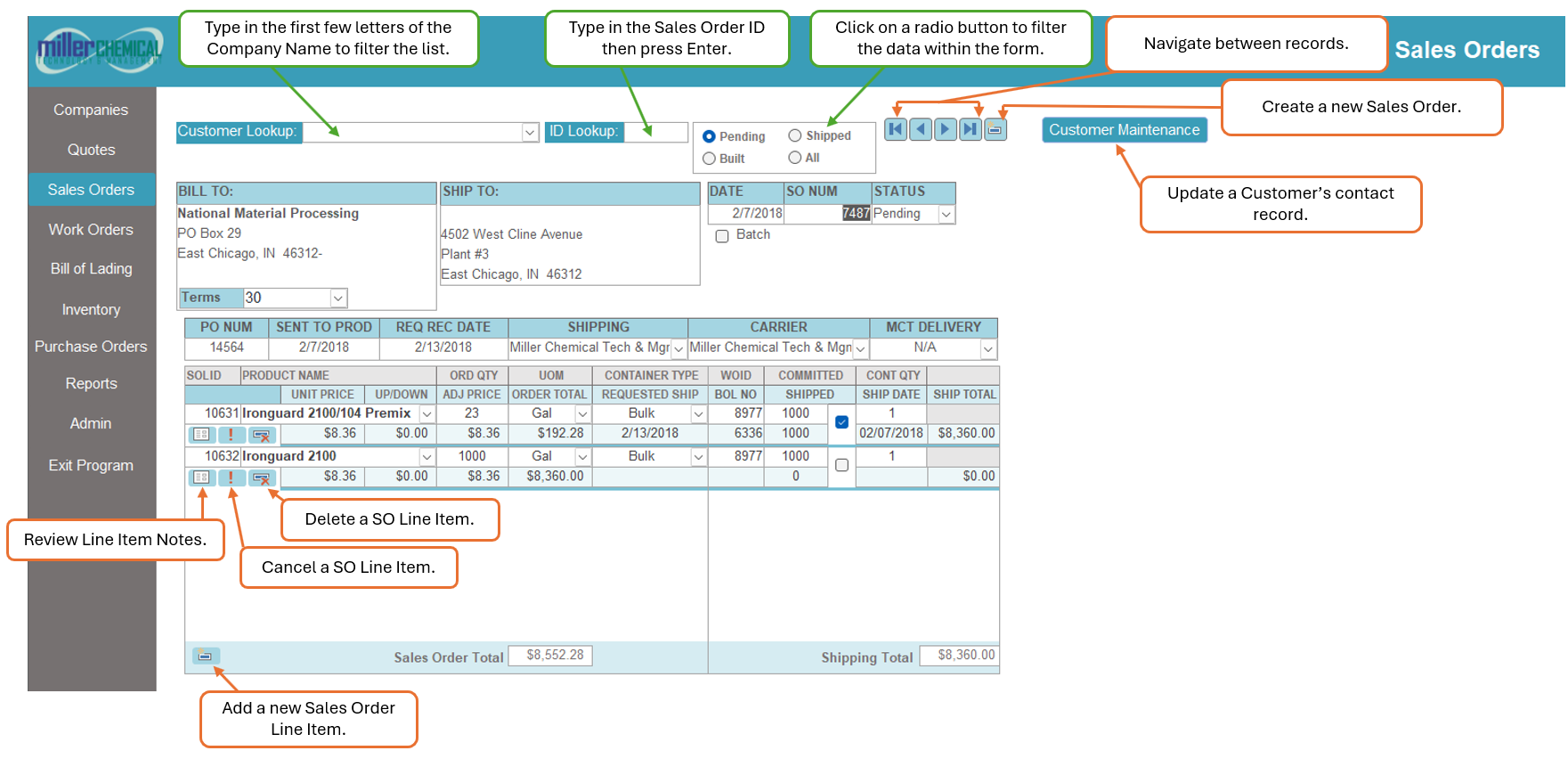 To quickly navigate to a specific Sales Order, type the number of the Sales Order in the ID Lookup field then hit Enter to navigate to that record.